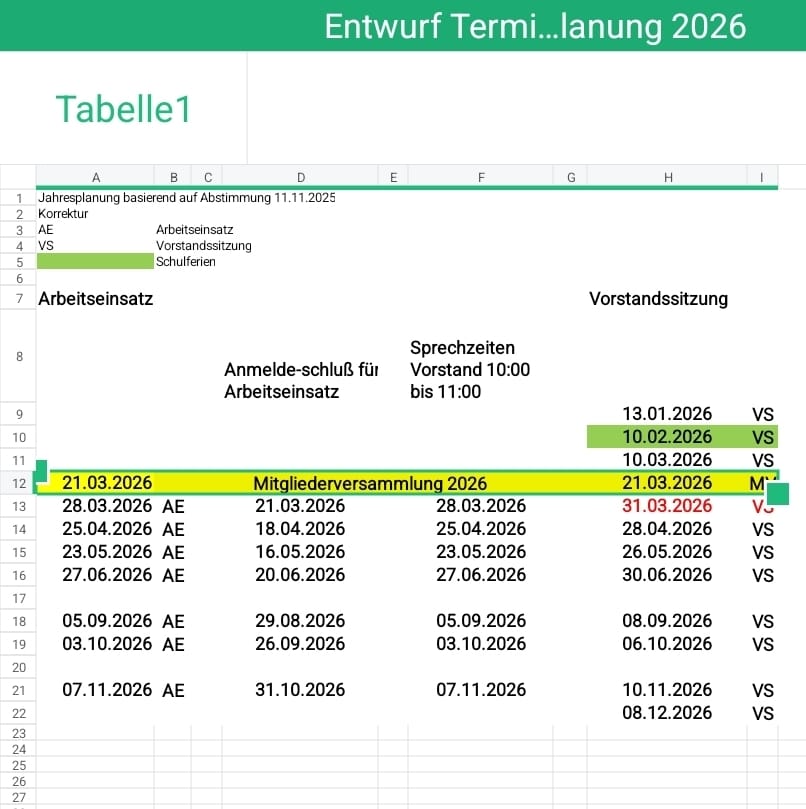 Die Arbeitseinsätze finden in der Zeit von 9.00 bis 12:00 Uhr statt. Die Sprechstunde ist in der Zeit von 10:00 bis 11:00 Uhr. Bitte unbedingt vorher anmelden!